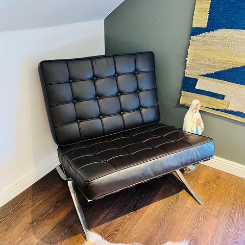 Dock skador på båda då ett par av sittremmarna gått sönder. Konstläder på dynorna.