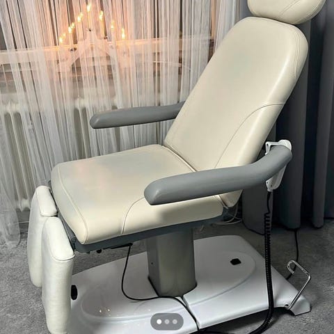 Säljer en mycket stabil och bekväm elektrisk behandlingsstol från Fysra i professionellt utförande, perfekt för klinik, salong, spa, massage, hudvård eller fotvård.