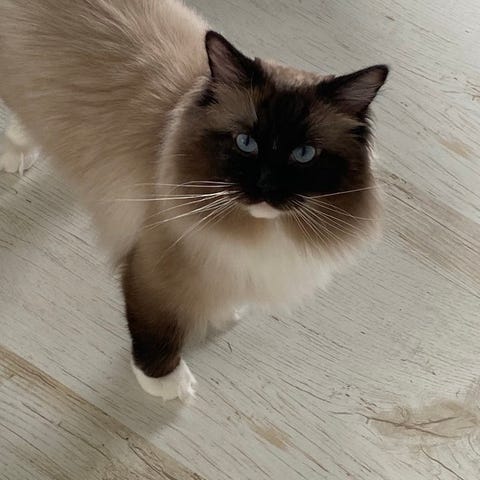 Han är 100% ragdoll men utan stamtavla och räknas därför som huskatt, Frasse har därför möjlighet att ta emot honor oavsett ras så länge de är friska och sunda.