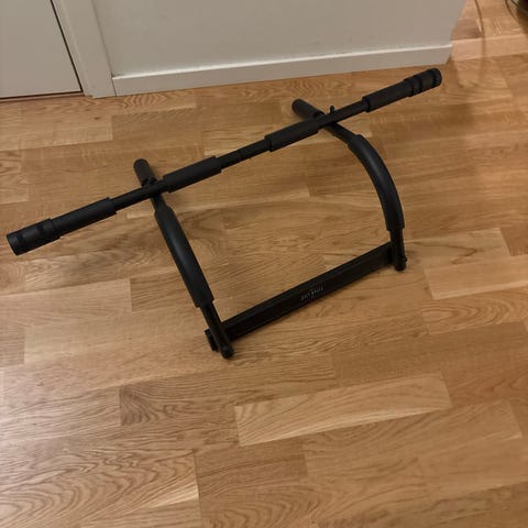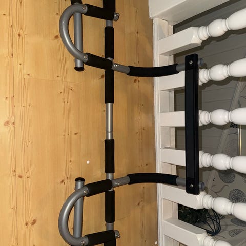 Doorframe pull-up bar for easy chin-ups and pull-ups, installs in seconds without tools or drilling. Sturdy steel construction, fits most standard door frames and with padded grips for comfort and no slipping. Perfect for home workouts – just hang it up, do your reps, and store away easily. Its from a smoke free and pet free household.