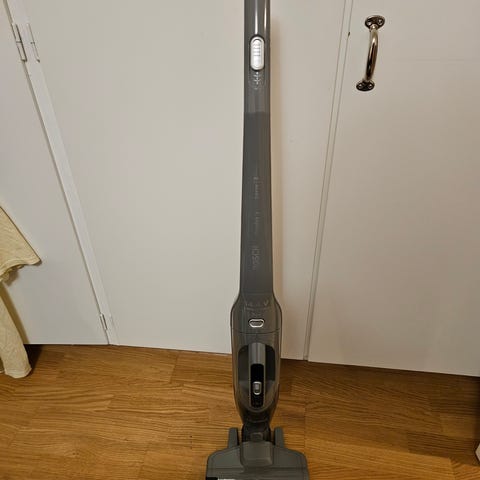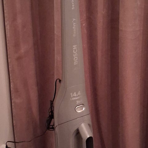 Bosch Ergomaxx X dammsugare med justerbar sugstyrka och tillbehör för olika ytor. Enheten är mörkblå och svart och tillverkad med Bosch motor teknologi i Tyskland. Ca ett år gammal och 13 dammsugarpåsar till.