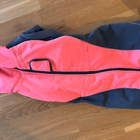 Rukka Hundoverall i svart (ej fodrad). Storlek 60, tillverkad av vattentätt material. Overallen har stretchigt material för god komfort och rörelsefrihet. Den är försedd med dragkedja längs ryggen för enkel på- och avtagning, kardborrestängning vid benen för anpassning till olika tassstorlekar samt hög, justerbar krage för skydd mot vind. Reflekterande detaljer ingår för ökad synlighet i mörker.