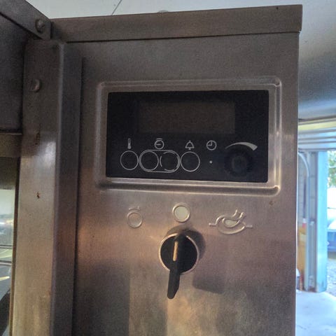 Element elektrisk ugn i rostfritt stål med ugnslucka av glas. Utrustad med reglage för temperatur och tid. Passar för bakning och uppvärmning av mindre matportioner.