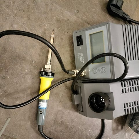 En bra lödare knappt använd. Med tillbehör som ställ och löd tråd. Fler frågor skriv :)