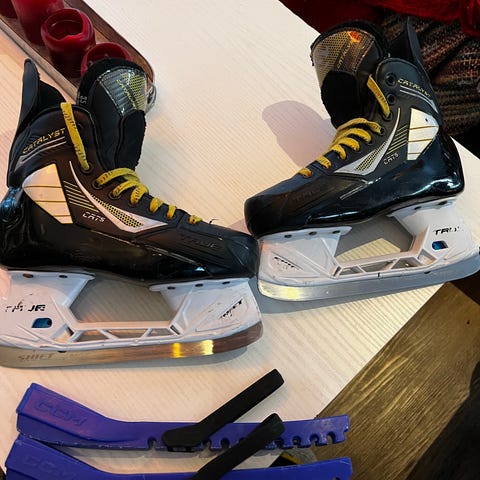 Pulse4 Ishockeyskridskor i storlek 36. Skridskorna är svarta med vita detaljer och har en Aero-skena. Insidan är fodrad för komfort. Avsedda för ishockey.