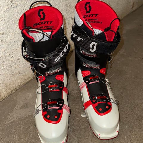 Säljer ett par toppturspjäxor från Scott. Passar tech bindning. Normalt slitage ca 10-15 åkdagar/säsong under 8 år. Inneskor i väldigt fint skick. Stabil och beprövad modell för baksidan men funkar även fint på framsidan.