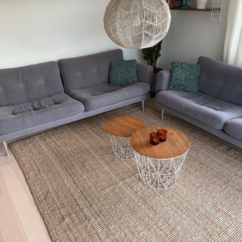 3 kuddar och ett fyrkantigt bord 75 x 75 x 48 kan ges bort tillsammans med sofforna om så önskas.