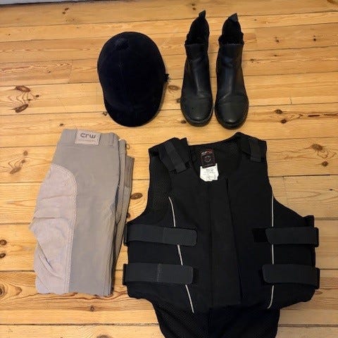 Vår dotter har avslutat sin ridning och säljer därför sina ridgrejer i mycket gott och fräscht skick. Utrustningen är väl omhändertagen och sparsamt använd.