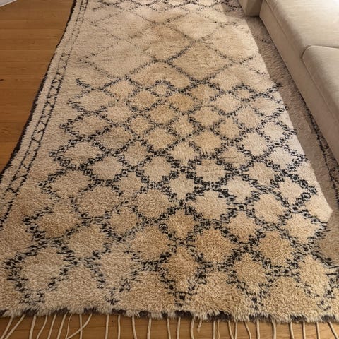Berger Rug i färgen light beige och är inköpt från artilleriet i Göteborg. Materialet är i 100% ull. Vi har haft mattan i vårt sovrum och är i fint skick.