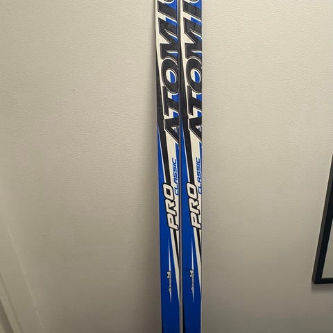 Längdskidor i bra skick. 202 cm. Använda av åkare som väger 90 kg. Kan säljas till paketpris med pjäxor i storlek 43.