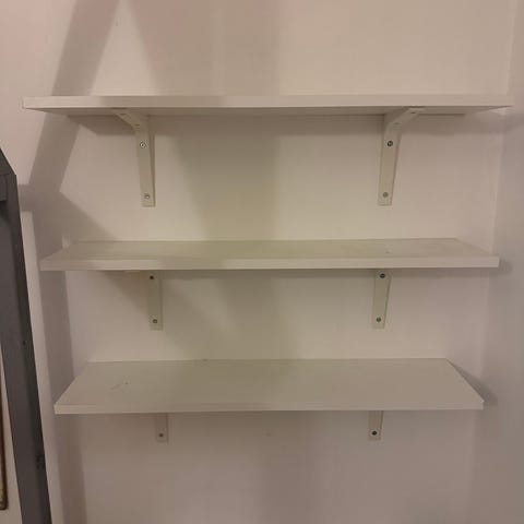 Vita väggmonterade hyllor i trä