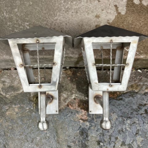 Säljer 4 st helt nya utelampor plus 4 använda (1 år). Mycket bra belysning då det skall vara 2 st 40 W glödlampor i varje lampa. Enkla att koppla på kabel och montera och blir blir mycket snygga på fasaden. Mått 30 x 12 x 12 cm inkl väggfäste. Pris 99 kr/st men säljer helst alla 8 lampor för totalt 495 kr. Nypris i butik är 295 kr/st.