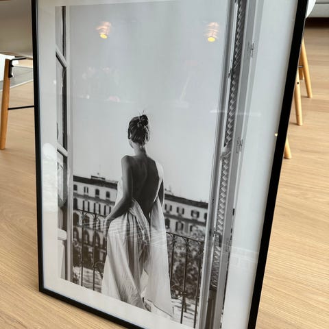 Fotokonst i svart ram med motiv.