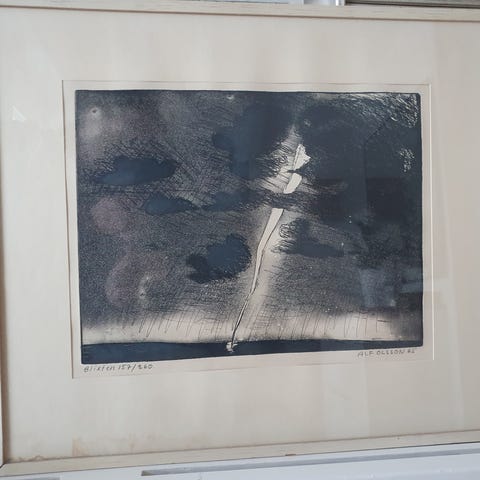 Konstverket är inramat med passepartout och glas. Passar för väggdekoration i olika miljöer.