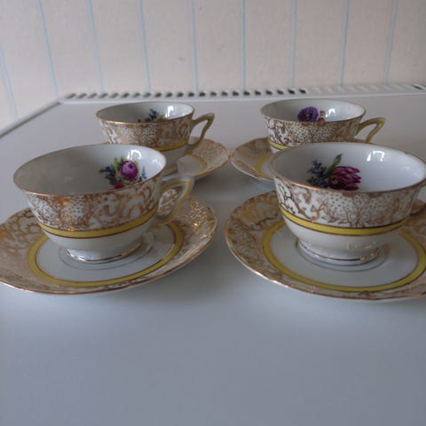 5 st koppar och fat plus ett extra fat.Tillverkade av Union K i dåvarande Tjeckoslovakien.