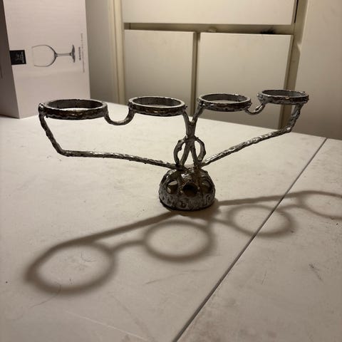 IKEA ljusstake i metall med tre armar för ljus. Designad för att hålla flera ljus samtidigt och användbar som dekoration eller belysning.