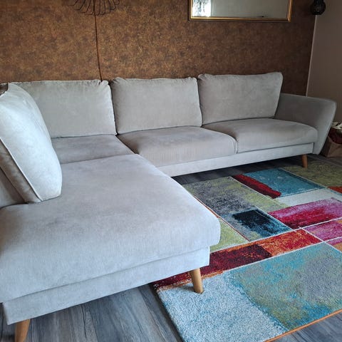 Ljus beige soffa med måtten 3 x 1,95m inköpt på WIKA möbler nypris var drygt 20tkr, fint skick med nytvättade dynor.