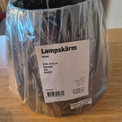 Celyn blå lampskärm i 100% bomull, cylinderformad, 25 cm bred och 27 cm hög. Den har E27 ringfäste och passar din lampa; är snygg, praktisk, funkar bra och håller länge.