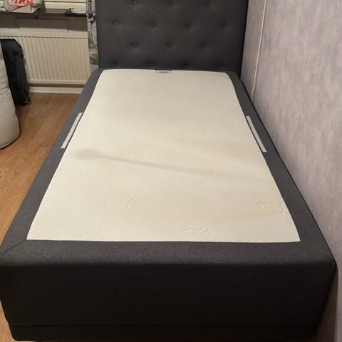 Sänggavel Buttons från Jysk och madrasskydd Topcool från Värnamo of Sweden medföljer