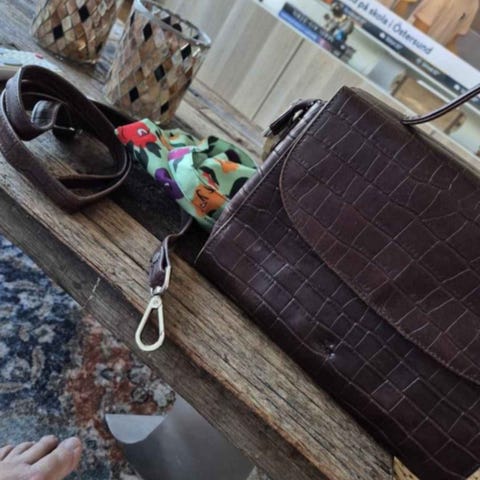 Materialkvalitet: Hållbart nötskinn står emot vardagsslitage och hjälper väskan att behålla formen över tid.