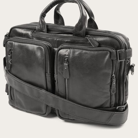 De två framfickorna ger snabb åtkomst till telefon och småsaker, medan huvudfacken håller dokument och teknik åtskilda. Synliga sömmar och det patinerade lädret ger väskan ett vintageuttryck som passar både vardagsstil och smart casual. Metallblixtlås och spännen ger en pålitlig, okomplicerad finish som matchar designen.