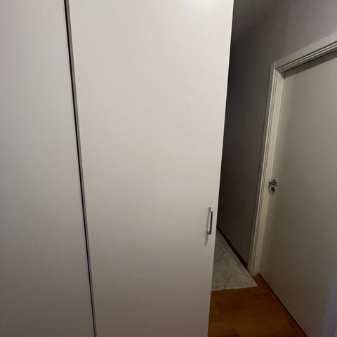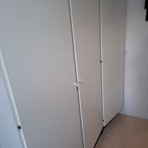 Ena garderoben är full med fasta ordentliga hyllplan.