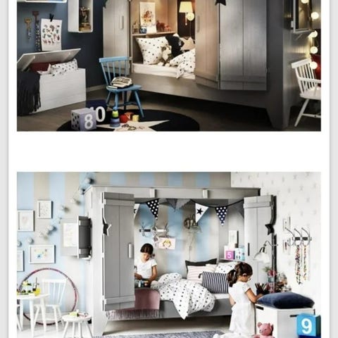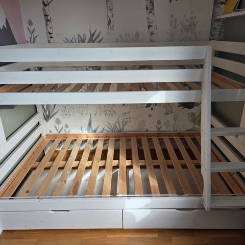 Dottern har nu vuxit ur sin kojsäng som varit mycket uppskattad. En mysig säng att krypa in i med dörrar som kan stängas helt eller delvis, ett litet fönster med öppningsbara luckor samt två hyllor invändigt.