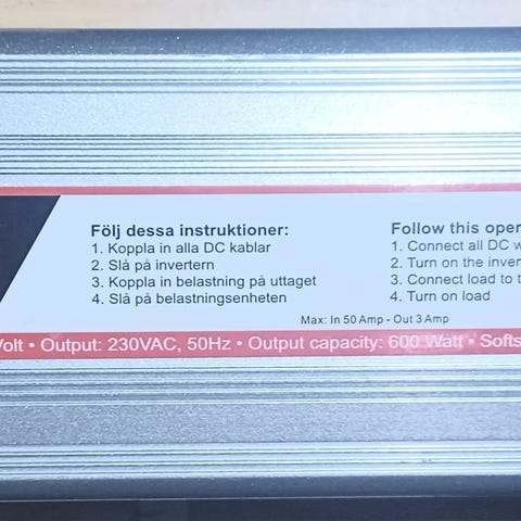 Omvandlar spänning från 230v växelström till 110v växelström eller tvärt om 110v växelström till 230v växelström 500 watt. Bra om man skall till USA, eller om man har Amerikanska elprodukter som man vill koppla in i Sverige. Aldrig använd.