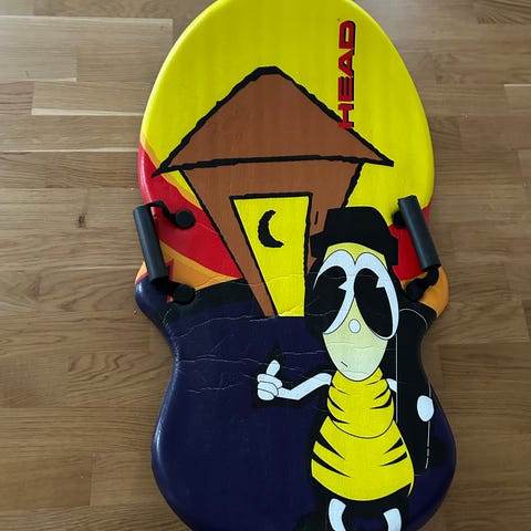 Rymlig styrpulka med plats för 2 personer. Styrning och broms finns för kontrollerad åkning.