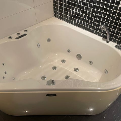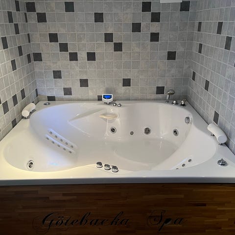 Spabad/hemmaspa/bubbelbadkar, ca 10 år gammalt, säljes. Fungerar utan bekymmer, men blir bara stående hos oss. Inköpt för ca 30.000. Vi säljer det väl rengjort, och vi bär själva ner det till ytterdörren. Resten av transporten ordnar köparen, släp rekommenderas. Ca 170 cm långt, 96 cm brett på bredaste stället. Överlag ok skick, finns en liten skada i botten ca 1 cm. En av de kromade skydden till jetstrålarna har fallit av, men finns kvar och går nog att sätta fast igen. Påverkar inte funktionen.
