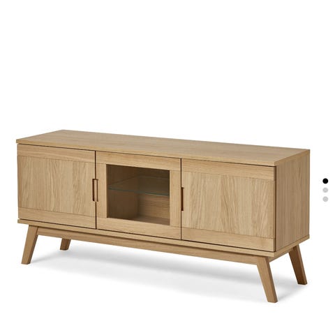 Fabriksny TV-bänk från Trademax. Modellen heter Hampton. Står omonterad i ett oöppnat platt paket. Köptes, men kom aldrig till användning på grund av ändrade planer i möbleringen.