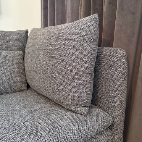 Säljer en stor och rymlig hörnsoffa. Soffan är synligt använd, men fortfarande bekväm och fullt fungerande. Perfekt som extra soffa, till sommarstuga, garage, uterum eller på altan under tak – men funkar självklart även inomhus.