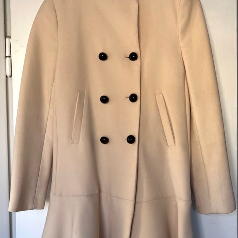 Beige oversized kappa för dam i storlek 36 från Dots. Färgen går mer mot beige gula riktningen.