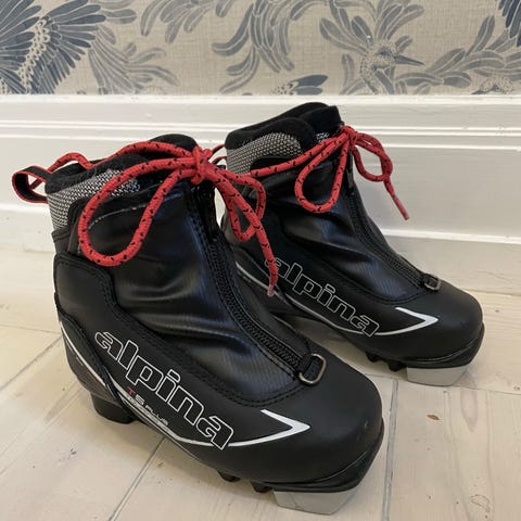 Längdåkningspaket för barn, ett par kombo pjäxor med ett par skateskidor samt ett par klassiska vallningsfria.