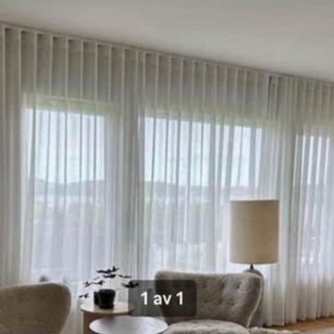 Hissgardin i Josef Franks mönster Delhi, sydd av sömmerska 2022.