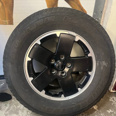 Fälgar med helt nya allround däck. Däcken kan även köpas separat. Suttit på en Jeep Wrangler 2013