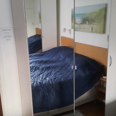 IKEA garderob i bra skick med en spegeldörr och en dörr i vit färg. Hyllplan och två nätlådor. Jag kan hjälpa till med nedmontering om ni vill se garderoben uppmonterad först. Annars kan jag nedmontera den innan ni kommer.