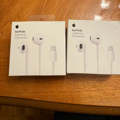 Apple EarPods hörlurar med Lightning-kontakt. Hörlurarna är vita och levereras i oöppnad originalförpackning. Designade för kompatibilitet med enheter som har Lightning-port.