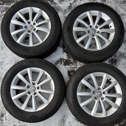 • Däck: Yokohama iceGUARD Stud iG65 – premium dubbdäck med utmärkt grepp på is och snö. Dimension: 225/55 R17 101T XL M+S + 3PMSF (snöflinga) Tillverkade 2019 (DOT 3019), men sparsamt använda – ca 8 mm mönsterdjup kvar (mycket grepp kvar!). Dubbarna sitter bra och är i gott skick.