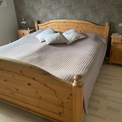 Tre st furusängar, tunga och rejäla. Inkl madrass, bäddmadrass och madrasskydd. Sängarna från 70-talet men madrasser sen 2024. Mycket lite använda. I skick som nya. Enbart madrasserna för en enda säng kostade över 2000 kr. Vi har haft dom till gästsängar. Säljer pga att huset nu ska hyras ut året runt.