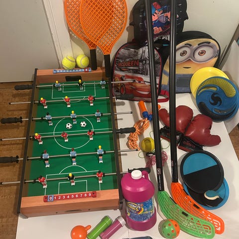 Ett helt sett med nät och olika rack och bollar, perfekt om barnen vill ha något att göra hemma. Otroligt lätt att sätta upp och ta ner.