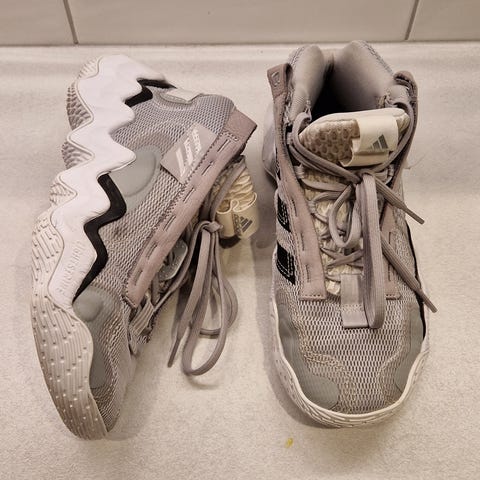 Basketskor från adidas, i princip helt oanvända. Beställde fel storlek och glömde bort att returnera så de har stått i ett skåp sedan dess. Strl 44-2/3