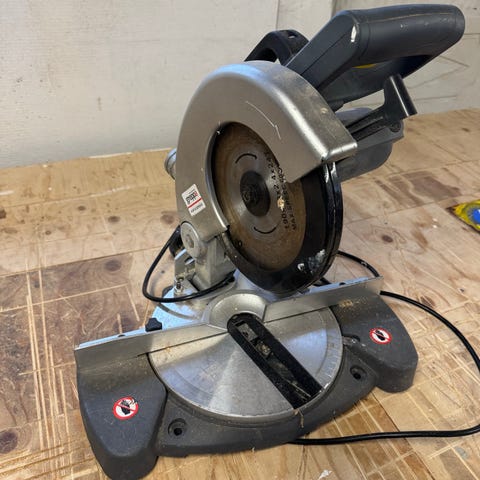 2: enklare Geringssåg, märke GS, sågbredd 45-90 grader. Sågblad 550-45mm. Pris 200:-