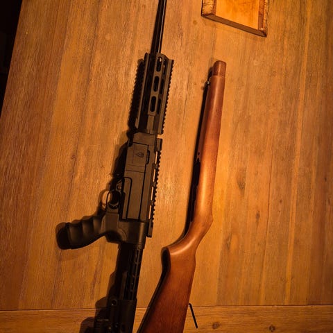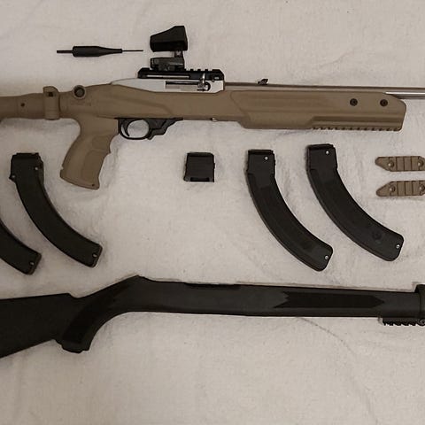 mynningsbroms, 3d printad bagrider och ett 10skottsmagain ingår.