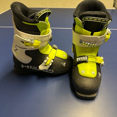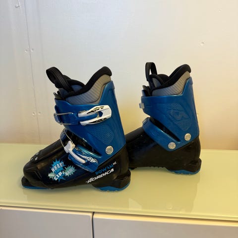 Välanvända alpinpjäxor för barn, storlek 195 (motsvarar skostorlek 31).