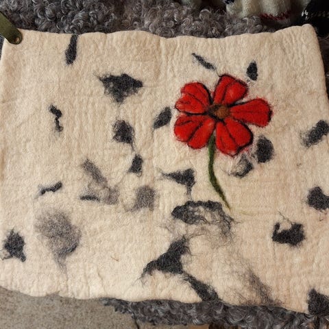 Röd sittkälke med blått tygsäte. Konstruktion i trä med tygsäte för sittkomfort. Passar för vinterlek och transport på snö.