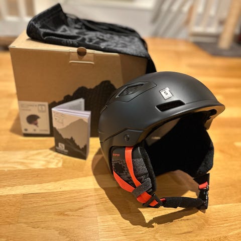 Everest slalomhjälm med skidglasögon på. Svart. Strl S/M 55/59 MIPS, vädringslucka, väldigt mjukt innerfoder. Ställbar i nacken. Inköpt ny för 1 år sedan och använd ca 1v. Mkt fint skick. Inga repor på glaset. Säljes för 650kr. Finns i sätra.