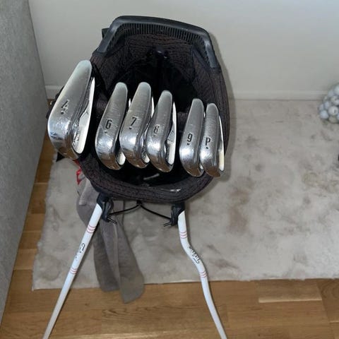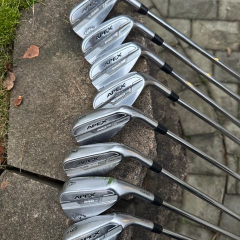 Hjälper min pappa att sälja sitt järnset Callaway apex, superspeed skaft. De är fortkortade 1cm så passar en spelare mellan 170-175cm. Klubborna är sparsamt använda och köpta 2018. Pris kan diskuteras vid snabb affär!