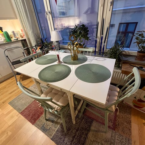Ett klaffköksbord från IKEA Nordviken med 2 stolar