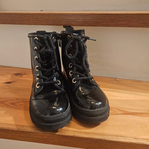 Svarta glansiga och varmfodrade kängor i mycket fint skick. Stl 27 med innermått ca 175 mm. Djur- och rökfritt hem.